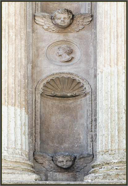 figuras antropomorfas femeninas y hojas de acanto. La luz penetra