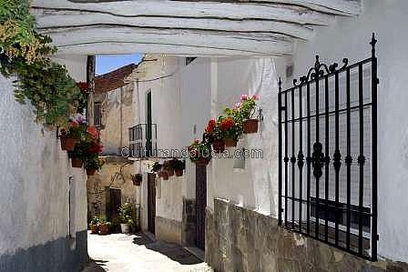 Iglesia mudejar de San Juan Evangelista (siglo XVI ). Calle morisca del pueblo.