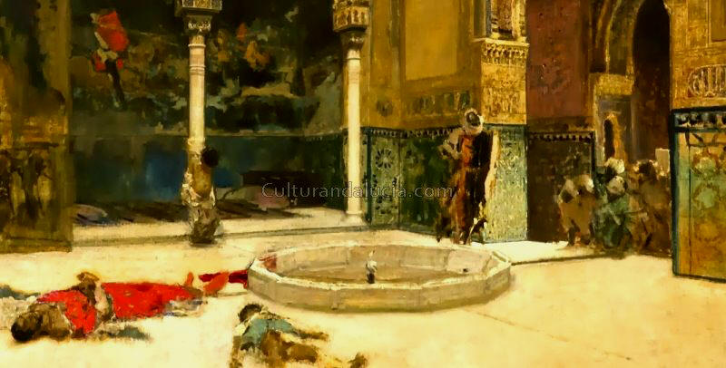 Abencerrajes, obra de José Villegas Cordero. Según la tradición, la sangre tiñó de rojo el agua de las fuentes del Patio de los Leones.