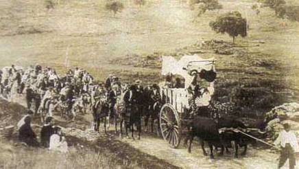 a Yerma. Lleva de la mano a un niño vestido de blanco. Suena el