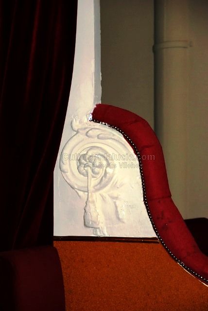LOS PALCOS estaban divididos en dos zonas separadas por una cortina. La interior tenía como objetivo dotarlo de un espacio que permitiera cierta privacidad. En el centro del balcón principal del tercer piso, un mascaron alegórico y el escudo de Almería informan sobre las señas de identidad del edificio. En la parte superior de las columnas que sostienen los arcos deprimidos, dos querubines sostienen un jarrón que contiene las esencias artísticas. En el balcón del segundo piso las protagonistas son guirnaldas florales formando una parábola en el centro. En el palco de platea y en la base de las columnas, varias máscaras alegóricas modernistas completan la decoración.